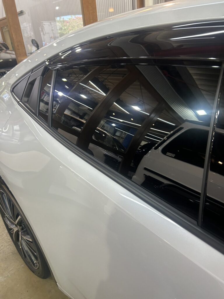同時に施工したリア5面のウインドウフィルムは、プライバシー保護や車内温度上昇の軽減にも効果的。これにより、見た目の引き締まり感だけでなく、快適なカーライフもサポートします。
