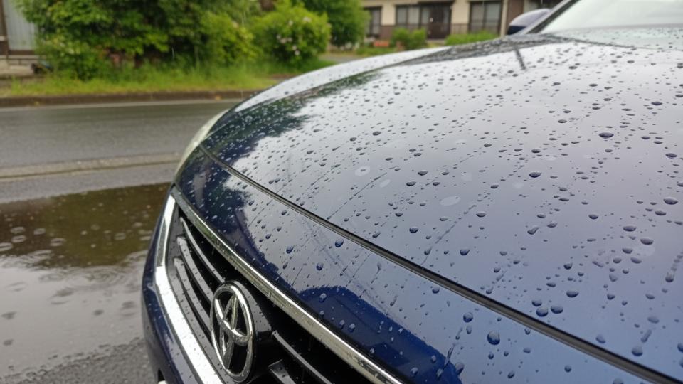 しかし、雨が降り続く間にボディに汚れ(花粉、砂埃、排気ガスなど)が付着し、それが雨水と混ざり合って乾燥してしまうと、雨染みや水シミの原因となる可能性があります。